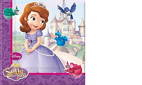 Ce paquet comprend 20 serviettes Princesse Sofia en papier, sous licence officielle. Chaque serviette mesure environ 33 x 33 cm une fois dépliée et 16.5 x 16.5 cm pliée. Un imprimé représentant la princesse, les fées et le chateau en arrière plan est présent. Les inscriptions Sofia the first et Disney sont également présentes.   Ces serviettes seront parfaites pour organiser un magnifique anniversaire à votre petite princesse sur le thème du dessin animé, Princesse Sofia.