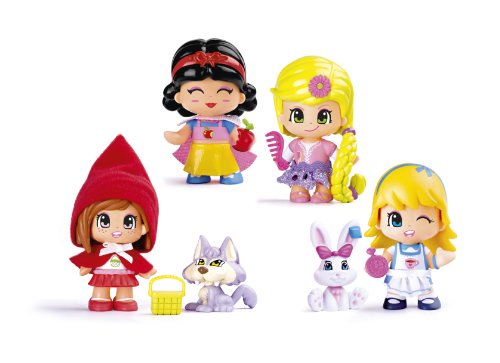 Pinypon Figures as Fairy Tale Characters, Snow White with Accesories, Little Red Riding Hood with Pet Wolf and Accessories, Alice in Wonderland with Pet Rabbit and Accessories, Rapunzel with AccessoriesDescriptif produit: Joli pack contenant les 4 figurines conte de fées et 2 de leurs animaux domestiques.