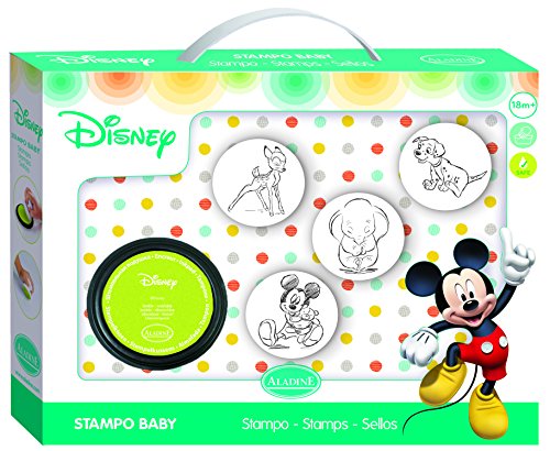 Cet article tiré de l’univers du dessin animé Mickey et ses amis a pour nom officiel : Aladine Mouse Stampo Baby Mickey, 61002.