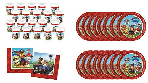 Ce jeu tiré de l’univers du dessin animé Pat Patrouille a pour nom officiel : ALMACENESADAN 0445, Pack Fêtes jetables et Chien de Patrouille Anniversaire, 16 Assiettes 23 cm, 20 vaisseaux 220 ML, Pack 20 Serviettes de Table Patrouille Patte.