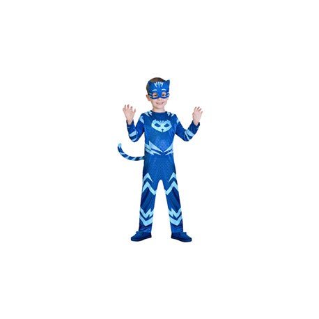 Ce déguisement de Yoyo pour enfant est sous licence officielle Pyjamasques . Il se compose dun masque et dune combinaison avec queue. La combinaison à manches longues est entièrement bleue, avec un imprimé du logo (une tête de chat) et de motifs déclairs bleu ciel pour representer un des super pouvoirs (vitesse, ouïe fine et capacité à retomber sur ses pattes) de ce super-héros des plus petits. Pour un rendu fidèle à ce dessin-animé cette combinaison est également équipée dune queue de chat La masque, représente le visage et les oreilles de chat et possède deux grandes ouvertures au niveau des yeux pour une bonne visibilité. Il sera laccessoire indispensable pour garder lanonymat à la tombée de la nuit! Avec ce déguisement complet votre enfant pourra incarner son héros préféré et assurer la sécurité de tous lors de goûters danniversaire, de soirées déguisées ou du carnaval!combinaison masque
