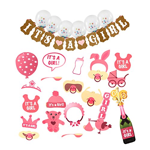 LE FORFAIT COMPREND–L’ensemble comprend 27 cartes épaisses en couleurs bleues avec différents types, des bâtons de bois et des points de colle, 1 pièce IT’S A GIRL bannière et 6 pièces ballons de 12 »