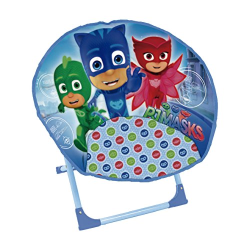 Ce jouet tiré de l’univers du dessin animé Pyjamasques a pour nom officiel : Arditex Siège Lune Pliable en Polyester avec Structure en métal sous Licence Les pyjamasques, 50 x 50 x 50 cm.