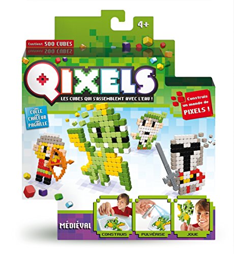 Mini kit 4 créations Qixels (thème guerriers). Ces Qixels se fixent avec de l’eau comme par magie ! Crée un tout nouvel univers, Qixels après Qixels ! Il te suffit de choisir un modèle puis de le reproduire avec les Qixels. Vaporise un peu d’eau, et le tour est joué.. Dans ce pack tout le nécessaire pour réaliser 4 créations sur le thème des chevaliers et plus encore, la seule limite est votre imagination et votre créativité !. A partir de 4 ans. ATTENTION! Ne convient pas aux enfants de moins de 36 mois, risque d’apshyxie.Loisirs Créatifs