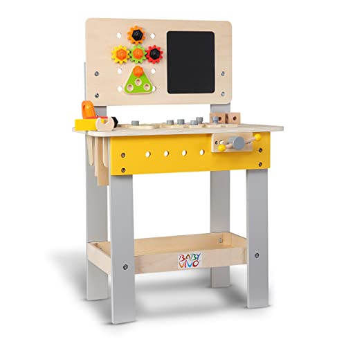 Baby Vivo Établi du Bricoleur Jouet en Bois pour Enfant – avec Tableau pour Écrire et Peindre et 39 Pièces Accessoires Éléments Outil – Ajustable en Hauteur Atelier Créatif Jouet d’Imitation – Bob