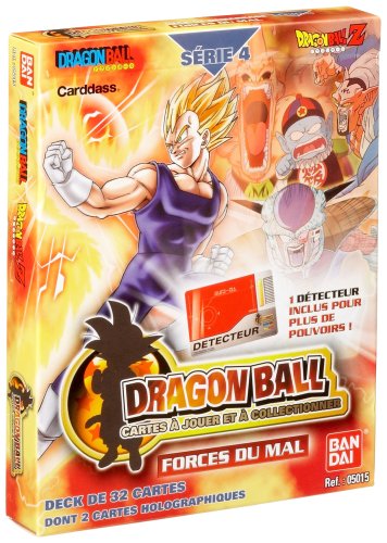 « Vaincre la menace » et « Forces du Mal » sont les deux très attendus nouveaux starters de la série des JCC DRAGON BALL. Dans le premier, les joueurs et collectionneurs retrouveront avec plaisir les personnages des trois premières séries sous des versions différentes. Goku, et ses compagnons de Bataille accompagnent dans ce nouvel opus l’arrivée du Roi Tschapah et du Roi de la terre… Comme son nom l’indique, le starter « Force du Mal » permettra d’enrichir une collection de personnages de nature Maléfique, Criminel et Planète… Buu et Vegeta sont présents au coté de Frieza, du Général rouge et de Raditz entre autres… et d’un Dabura « kame house » avec 3000 en points d’attaque ! En plus d’être complètement jouables indépendamment du reste de la collection, ces deux nouveaux starters sont deux extraordinaires compléments pour les trois premières séries, d’autant plus que Bandai a réintégré dans cette quatrième série des cartes de la série 1 tant recherchées par les joueurs… Enfin, la vrai nouveauté, c’est l’arrivée d’une nouvelle règle ! Certaines cartes contiennent des informations cachées qui ne peuvent être « Scannées » par le joueur qu’à l’aide d’un détecteur fourni dans chaque Starter… un « plus » pour le collectionneur et du Fun pour le joueur… Informations : Type : Cartes Editeur : BandaiHauteur du produit : 14.5 centimètres