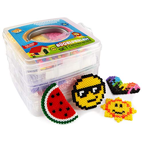 10.000 perles à repasser (5mm) en 14 différentes couleurs assorties – avec une panoplie de perles noires et blanches