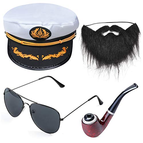 Ce produit dérivé tiré de l’univers du dessin animé Pirata et Capitano a pour nom officiel : Beelittle Yacht Capitaine Chapeau Costume Accessoires Ensemble Réglable Bateau Sailor Ship Skipper Cap Aviateur Lunettes De Soleil Tuyau De Tabac avec Ancre Conception Accessoires (G).