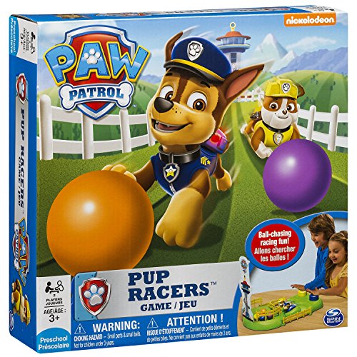 Are you the fastest pup of them all? Find out with the Paw Patrol Pup Racers Game! It’s non-stop ball-chasing racing fun! Chase and Rubble are racing up the track to fetch balls. Whoever collects the most, wins! Press the button as fast as you can to get your Paw Patrol Pup moving as fast as possible. Keep going until all the balls are gone! It’s the frantic game of fast moving pups! Bring home the ball-chasing racing fun of the Paw Patrol Pup Racers Game!Lance Ruben et Chase de la Pat’ Patrouille dans une course endiablée sur le circuit pour ramener les balles jusqu’à leur réserve
