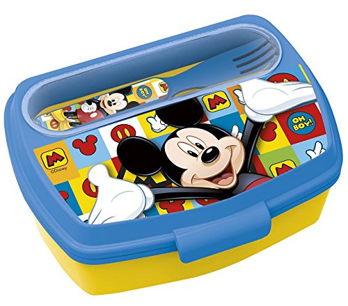 Cet article tiré de l’univers du dessin animé Mickey et ses amis a pour nom officiel : Boite à Goûter avec Couverts Mickey Disney.