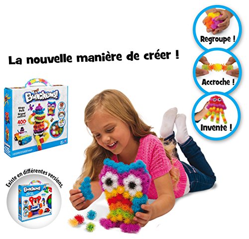 Un super grand coffret de Bunchems pour une infinité de possibilités de créations ! Vous vous demandez sûrement ce que sont les Bunchems ? Ce sont de drôles de petites boules de différentes couleurs, à fixer entre elles pour créer des objets, des personnages et bien d’autres ! Créez en 2D et en 3D, laissez libre cours à votre imagination. Les Bunchems, c’est une nouvelle manière de créer, facile et sans limite pour l’imagination. Ils adhérent magiquement entre eux. Il n’y ni bonne ni mauvaise manière de les fixer entre eux : pas besoin de colle, d’eau, de chaleur… Ils s’attachent grâce à leur forme unique, sur le principe du velcro. Et en plus, vous pouvez recommencer à l’infini ! Chaque petite boule contient un trou qui permet de fixer des accessoires amusants (moustaches, yeux, bouches, chapeau…) pour donner vie à vos créations. Contenu : – 50 Bunchems oranges – 50 Bunchems verts – 50 Bunchems bleus – 50 Bunchems violets – 50 Bunchems rouges – 50 Bunchems noirs – 50 Bunchems jaunes – 20 Bunchems blancs – 39 accessoires à fixer pour donner vie aux créations – 1 mode d’emploi avec 14 suggestions de créations. Dimensions de la boîte : 29.3 x 6.7 x 29.3 cm.Avec Bunchems, on peut tout créer,