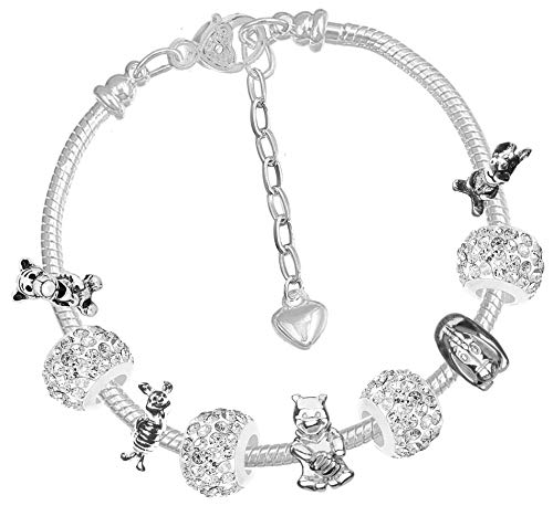 Ce jeu tiré de l’univers du dessin animé Pierre Lapin a pour nom officiel : Charm Buddy Bracelet à breloques pour enfant avec 5 pendentifs :Winnie l’ourson, Tigrou, Porcinet, Coco Lapin, Bourriquet, 16 cm, dans un coffret cadeau.