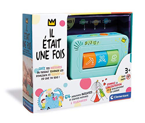 Ce jouet tiré de l’univers du dessin animé Mickey et ses amis a pour nom officiel : Clementoni-Il était Une Fois-Mon conteur d’histoires-Jeu interactif pour Enfant-Version française, 3 Ans et Plus, 52524, Multicolore.