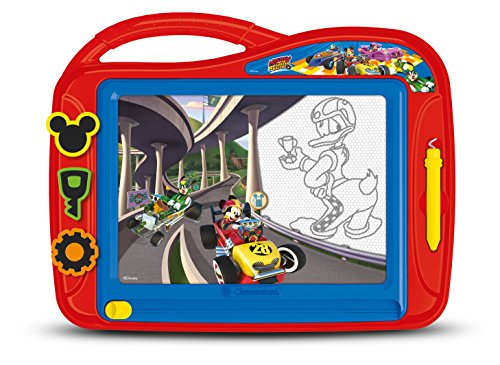 Ce jeu tiré de l’univers du dessin animé Mickey et ses amis a pour nom officiel : Clementoni – Mickey Top Départ – Ardoise Magique – Jeu créatif – Disney, 15163.