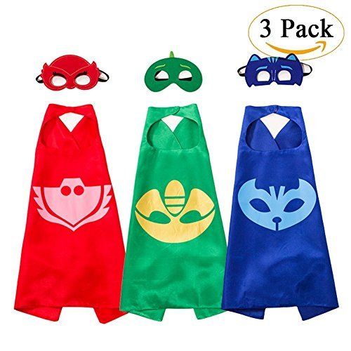 Cet article tiré de l’univers du dessin animé Pyjamasques a pour nom officiel : Costumes de Super Héros pour Enfants – 3 Capes et Masques.