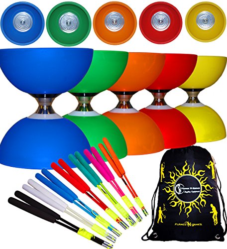 Juggle Dream Cyclone Classic Diabolo Set! qualité ultra lisse embrayage unidirectionnel Diabolo Set et Un choix de fibre de verre de couleur diablo bâtons, et un Flames ‘N Games FABRIC Diabolo Voyage sac! *** Assurez-ce une encore plus cool Diabolo Set en ajoutant un ensemble de lumière LED Kits et hypnotiser vous et votre public en jouant dans le noir !!! Rechercher « Kit Flames N Games LED Diabolo ».