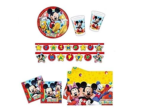 Célébrez votre fête d’anniversaire avec cet ensemble coloré de Mickey Mouse. Faites plaisir à votre enfant en décorant sa fête pour la rendre inoubliable! Le kit est composé de: N.3 Emballages Total assiettes: 24 assiettes N.3 Emballage verres tot: 24 verres N.2 Emballage serviettes papier tot: 40 serviettes N.1 Nappe 180x120cm N.1 guirlande joyeux anniversaireMickey Mouse est un personnage de fiction appartenant à l’univers Disney, apparaissant principalement dans des dessins animés, dans des bandes dessinées et des jeux vidéo. Véritable ambassadeur de la Walt Disney Company, il est présent dans la plupart des secteurs d’activité de la société, que ce soit l’animation, la télévision, les parcs d’attractions ou les produits de consommation. Mickey est utilisé comme un vecteur de communication et ses qualités doivent respecter la morale prônée par