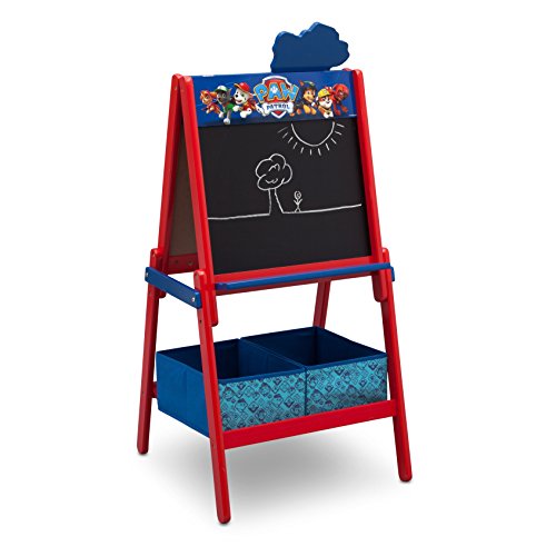 Ce jeu tiré de l’univers du dessin animé Pat Patrouille a pour nom officiel : DELTA CHILDREN Chevalet en Bois Double Face La Pat Patrouille, Rouge/Bleu, 55,88×55,88×115,7 cm.