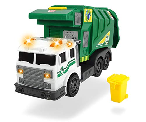 Dickie Toys City Cleaner Véhicule Route Nettoyage de Route Voiture Poubelle Lift Alimenté par Piles pour Poubelle, Hayon Ouvrable Fonction Inclinable Piles incluses 39cm Vert À partir de 3 Ans