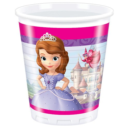 Ce jeu tiré de l’univers du dessin animé Princesse Sofia a pour nom officiel : Disney 200 ml en plastique Sofia The First Cups, Lot de 8.