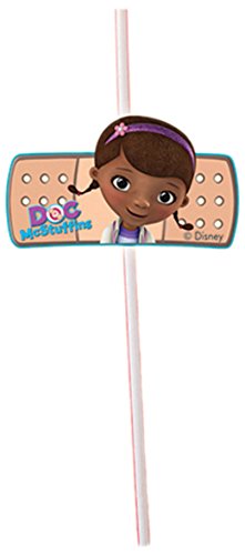Ces 6 pailles en plastique transparent sont sous licence officielle Disney.Elles mesurent environ 24 cm et son accompagnées de petites vignettes en carton mesurant  7.5 x 4 cm à leffigie de Dottie, Docteur la Peluche.  Ces pailles seront parfaites pour lanniversaire disney sur le thème du dessin animé Docteur la Peluche.6 Pailles