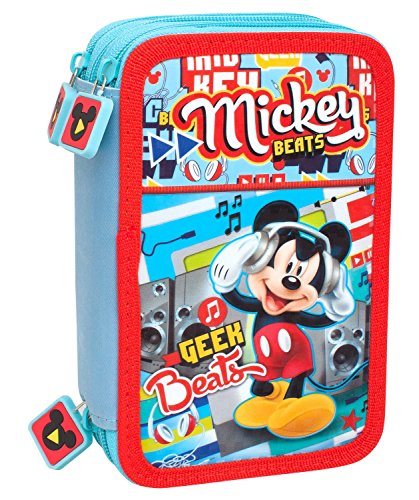 Disney Mickey Mouse 56324 Trousse Triple, 3 Compartiments, Feutres, Crayons, Accessoires École 44 Pièces, Polyester, MulticoloreTrousse triple 12,5 x 19,5 x 6,5cm.