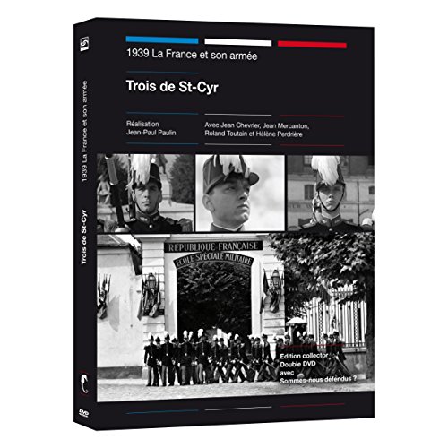 Édition Collector Double DVD avec Sommes-nous défendus ?Trois de St-Cyr est un film sur le Premier bataillon de France, la célèbre école de formation des officiers: la vie de l’école, les bahutages, les prises d’armes et cérémonies traditionnelles. Dans une deuxième partie le film salue l’attitude des officiers coloniaux, combattants déterminés mais aussi fins négociateurs, respectueux des populations et des cultures. La participation de l’armée est remarquable et sans elle et la figuration des hommes et des matériels, une telle entreprise aurait été impossible. La presse de l’époque y a vu une entreprise enfin à la hauteur des productions américaines, tant par le sujet que par les moyens mis en oeuvre. Le film fut comparé aux Trois Lanciers du Bengale de Henry Hathaway. Sommes-nous défendus ? Une fresque exceptionnelle qui témoigne à la fois de la réelle puissance militaire de la France à la veille de la Deuxième Guerre mondiale mais aussi de l’étrange défaitisme ambiant. Un journaliste décrit ce qu’il a vu lors d’un reportage : les armées de l’air, de terre, la marine, les troupes coloniales sénégalaises, malgaches et indochinoises, les installations de défense de la Ligne Maginot, les exercices militaires, les usines de fabrication d’armements…Magazine des Armées n°114 : Nos Cyrards à Coëtquidan