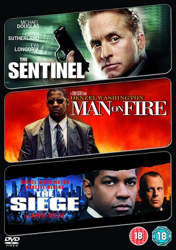 Please note this is a region 2 DVD and will require a region 2 or region free DVD player in order to play.Triple bill of action thrillers. In ‘The Sentinel’ (2006), a respected secret service agent, Pete Garrison (Michael Douglas), is framed and blackmailed over an affair with the First Lady, Sarah Ballentine (Kim Basinger). When a plot to assassinate President John Ballentine (David Rasche) is suspected, Garrison finds himself the primary suspect. When accused of treason, Garrison leads the investigating agents on a wild chase and the truth becomes more and more twisted. ‘Man On Fire’ (2004) stars Denzel Washington as John Creasy, a jaded former CIA agent hired by a wealthy Mexican family to act as bodyguard to their ten-year-old daughter Lupita (Dakota Fanning). Initially reluctant to take on such a lowly position, Creasy becomes increasingly fond of his charge as she asks him questions about his life and he begins to open up to her and discover a tenderness long missing from his own life. But his newfound equilibrium is shattered when the girl is kidnapped, and he vows to find the men responsible and bring them to his own form of rough justice. Finally, in ‘The Siege’ (1998), FBI/NYPD anti-terrorist officer ‘Hub’ Hubbard (Denzel Washington) is called in to investigate when a Brooklyn bus is bombed. The perpetrators are demanding the release of Sheik Ahmed Ben Talal, who has been kidnapped by US General William Devereaux (Bruce Willis). Hub focuses his initial search on Brooklyn’s Arab community, but is shadowed by CIA operative Elise Kraft (Annette Bening), whose contact in Palestine intimates that the real problem lies elsewhere. Before Hub or Kraft can act, however, the FBI headquarters are also bombed, and Deveraux imposes a state of martial law.
