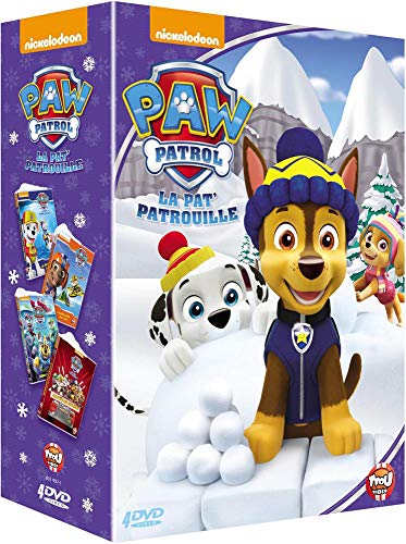 Le titre de ce DVD tiré de l’univers du dessin animé Pat Patrouille est : Paw Patrol, La Pat’ Patrouille-Coffret 4 DVD.