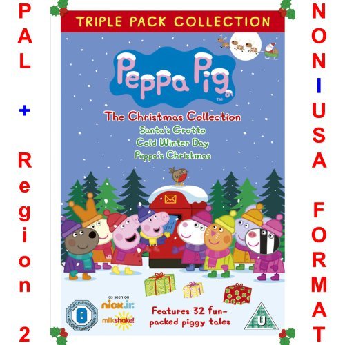 Le titre de ce DVD tiré de l’univers du dessin animé Peppa Pig est : Peppa Pig Triple Pack Christmas Collection [NON-U.S.A. FORMAT: PAL + REGION 2 + U.K. IMPORT] (Includes: Santa’s Grotto + Cold Winter Day + Peppa’s Christmas) by Peppa Pig.