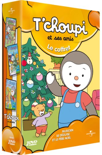 Le titre de ce DVD tiré de l’univers du dessin animé Tchoupi est : T’choupi et Ses Amis-Le Coffret-Se déguise + Et Le Père Noël + Musicien.