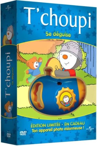 Le titre de ce DVD tiré de l’univers du dessin animé Tchoupi est : T’choupi – Se déguise [DVD + visionneuse photo].