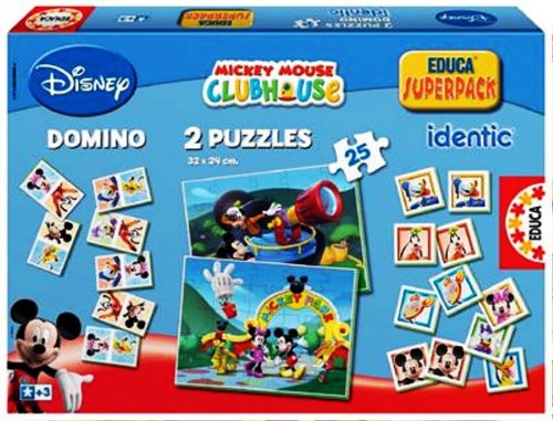 Descriptif Produit: Le Superpack Mickey Mouse Club House est une nouvelle source d’amusement pour les plus petits à partir de 3 ans. Un jeu éducatif et combinant à merveille amusement et apprentissage avec la garantie de qualité d’EDUCA.Ce nouveau Superpack contient 2 puzzles de 25 pièces illustrées de princesses et de fées, 1 jeu de mémoire composé de 12 paires Identic Memo Game et 1 jeu de dominos de 12 pièces emboîtables. 3 jeux en 1 qui feront les délices des plus jeunes et leur permettront d’apprendre tout en s’amusant.