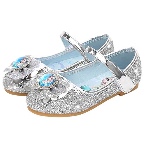 Eleasica Fille Talons Plats Chaussures de Princesse Reine des Neiges Elsa Anna Paillettes Déguisement Violet Argenté Bleu Rose Doux Halloween Noël Anniversaire Carnaval Cosplay 15-23cm EU22-36