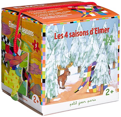 Coffret de 4 puzzles Parcourez les 4 saisons grâce aux puzzles à l’effigie d’Elmer le petit éléphant coloré.