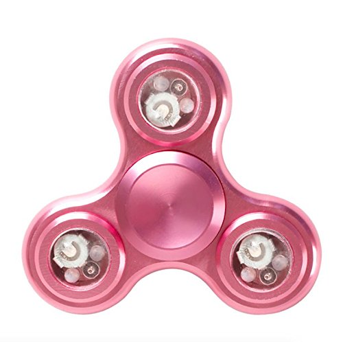 EVST Metal Fidget Hand Spinner Réducteur de stress Durable EDC Enfants Jeunes Adultes Jouets Super Long Spinner Temps idéal pour l’anxiété ADHD Autisme (Tri Fidget avec LED Light (dia 6.5cm) (Or Rose)