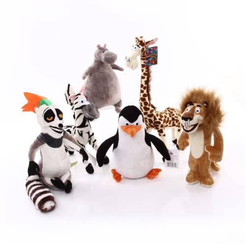 Film Madagascar Pingouin en Peluche Jouet Girafe Hippopotame Lion lémurien Pingouin poupée Chambre décor pour Enfants Cadeaux de noël Un Ensemble (6 pièces) 25cm