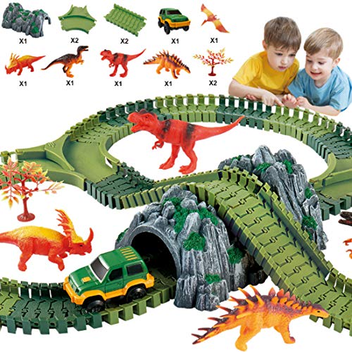Ce jouet tiré de l’univers du dessin animé Dino Train a pour nom officiel : Forweilai 157 pièces Puzzle Dinosaures Jouet Set, Jeu de Piste de Voiture de Course DIY pour Les Enfants.