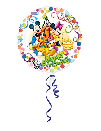 Ce ballon danniversaire est sous licence officielle Disney, il mesure près de 43 cm de diamètre. Il est blanc avec des ballons multicolors qui font le tour du ballon et au centre on peut voir Mickey et tous ses amis, Dingo, Donald, Pluto, Minnie et Daisy qui te souhaite tous ensemble un joyeux anniversaire ! Ce ballon pourra être gonfler avec de lair ou de lhélium et sera le cadeaux parfait pour un jeune fan de lunivers Disney !1 Ballon