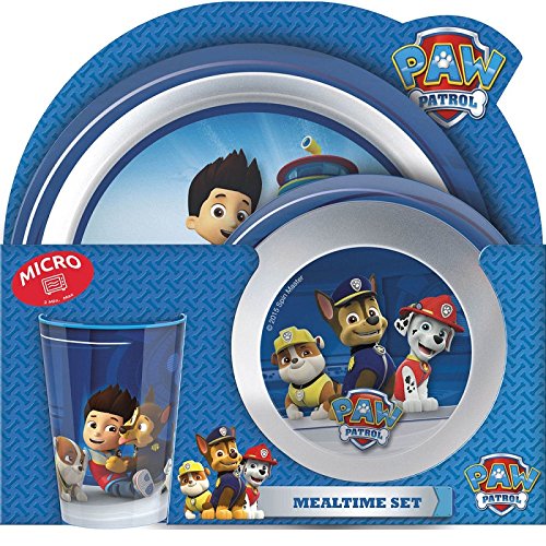 Ce jouet tiré de l’univers du dessin animé Pat Patrouille a pour nom officiel : Générique BBS Pat’ Patrouille 3x Sets de table en mélamine/polystyrène, multicolores.