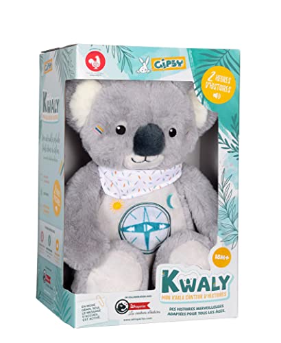 Kwaly est un adorable petit koala en peluche de 30 cm conteur d’histoires. Avec 15 histoires d’aventures et 14 histoires toutes douces pour s’endormir, ce sont près de 2 heures de merveilleux contes pour les enfants. Cette peluche interactive propose 3 niveaux d’écoute : « Initiatique » pour les enfants de 0 à 3 ans, « Découverte » pour les enfants en maternelle et « Expert » pour les enfants de la grande école. Kwaly le koala a été créé en collaboration avec Whisperies, la plus grande bibliothèque française d’histoires animées et sonorisées pour enfants.