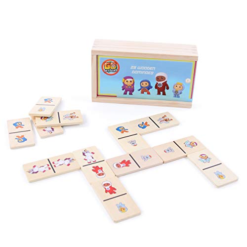 Ce jeu tiré de l’univers du dessin animé Geo Jet a pour nom officiel : Go jetters 1179 Dominos en Bois Multicolore.