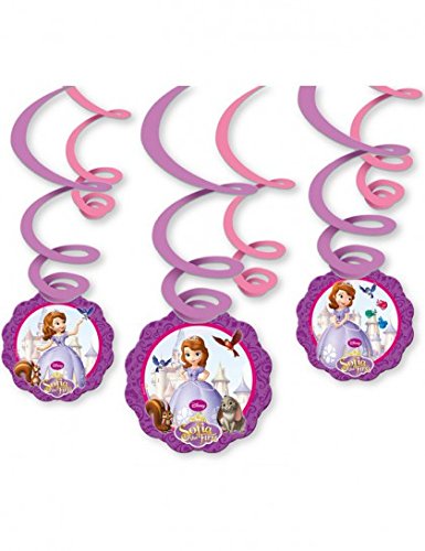 Superbe Disney Princesse Sofia the First Dangling Remolino décoration, impressionnant et définit la scène de Sofia anniversaire de sa fille, ou tout simplement pour utiliser dans n’importe quel ocasión. accroché dans un Remolino depuis le plafond avec brillant matériau et sur chaque extrémité est une image différente de Sofia et ses amis6 Pretty princesse Sofia la première décoration de plafond