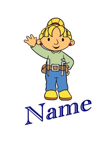 Ce jeu tiré de l’univers du dessin animé Bob le bricoleur a pour nom officiel : Image de repassage Bob le bricoleur avec nom personnalisé Plus 1 petit image d’exercices gratuit – pour textiles colorés.