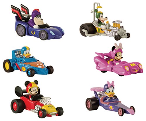 Pack de 1 mini voiture de course à échelle 1/64 de la série Mickey et ses amis top départ. Avec figurine incluse. Jusqu’à 6 mini voitures à Collectionner.