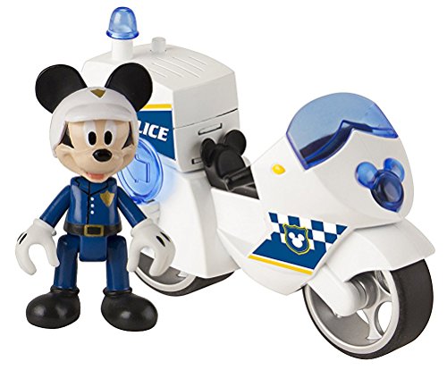 Inclus: 1 figurine articulée de l’agent de police Mickey, 1 moto et 1 panneau de circulation