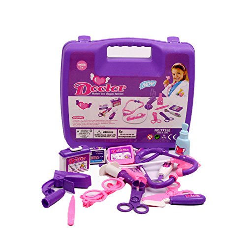 Ce jouet tiré de l’univers du dessin animé Docteur la peluche a pour nom officiel : Jeu d’Imitation Kit de Jouet Docteur et Infirmière Mallette Médicale avec Accessoires Valisette pour Enfant (Violet).