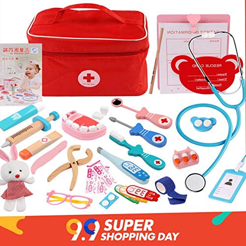 Jouets s docteu enfants docteur la peluche bois 3 4 5 6 an garcon fille Déguisement de Docteur Jouets Enfants Jeux d’imitation Infirmière Dentiste Mallette Outils Médical Cadeau pour Enfant Fille
