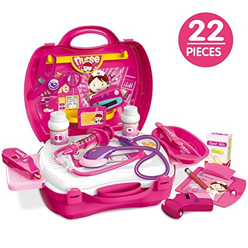 Ce jouet tiré de l’univers du dessin animé Docteur la peluche a pour nom officiel : Jwlife Jeu d’imitation, Docteur Enfant Jouet Trousse de Médecin-Role Play Jeux Éducatif pour Fille Garcon.