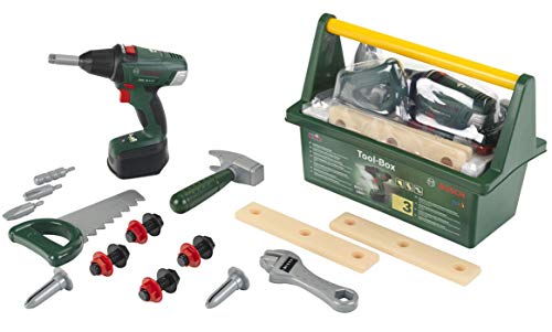 Cet article tiré de l’univers du dessin animé Bob le bricoleur a pour nom officiel : Klein 8520 Caisse à outils Bosch | Avec marteau, scie, clé à molette, etc. | Visseuse avec fonctions électroniques et embouts interchangeables | Dimensions : 31 cm x 16,5 cm x 12,5 cm | Dès 3 ans.